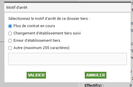 4 - En validant , le suivi du tiers s'arrête. Il ne disparaît pas du compte. Vous le retrouvez dans la liste des dossiers désactivés et dans les archives.