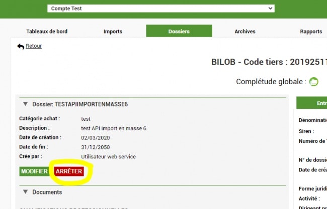 4 - En validant , le suivi du tiers s'arrête. Il ne disparaît pas du compte. Vous le retrouvez dans la liste des dossiers désactivés et dans les archives.