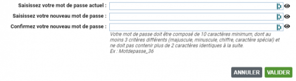 Votre mot de passe doit être composé de 10 caractères minimum, dont au moins 3 critères différents (majuscule, minuscule, chiffre, caractère spécial)